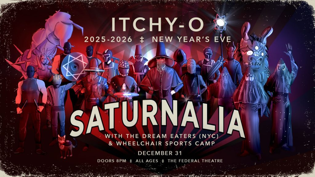 On the final night of the year, the world’s masked sonic collective itchy-O will throw a proper SATURNALIA and rare New Year’s Eve rite of ecstatic reversal and renewal at the newly reborn Federal Theatre. Joined by label-mates Wheelchair Sports Camp and NYC’s The Dream Eaters, itchy-O conducts their own ancient Roman festival of Saturn into a modern ritual for those looking to escape any run-of-the-mill New Year’s jag.