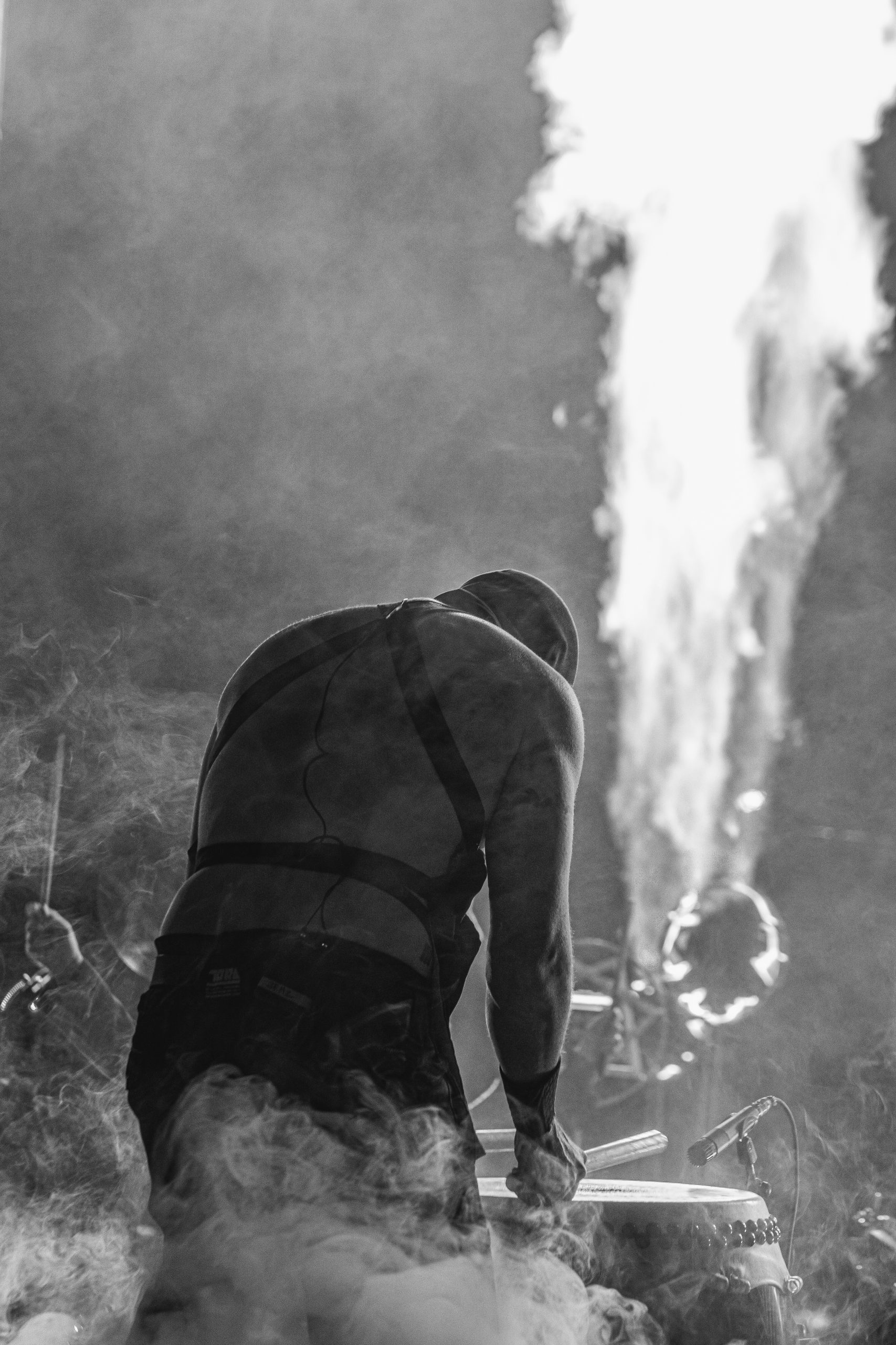 Itchy-O creates transcendent musical experiences by blending many cultural iconographies in an effort to provide a distinctive offering that dissolves familiarities, awakens possibilities, and employs the true nature and power of hive-minded ceremony. With a performance troupe of over 50+ musicians, dancers, puppeteers, and special effects experts, itchy-O creates a space where the performer and audience co-create an ecstatic artistic experience. Shaking all tenants of tradition, the percussive rhythms of the drum battery and taiko drums intermingle with unique custom-crafted electronic devices, providing a primal-futuristic spiritual immersion.